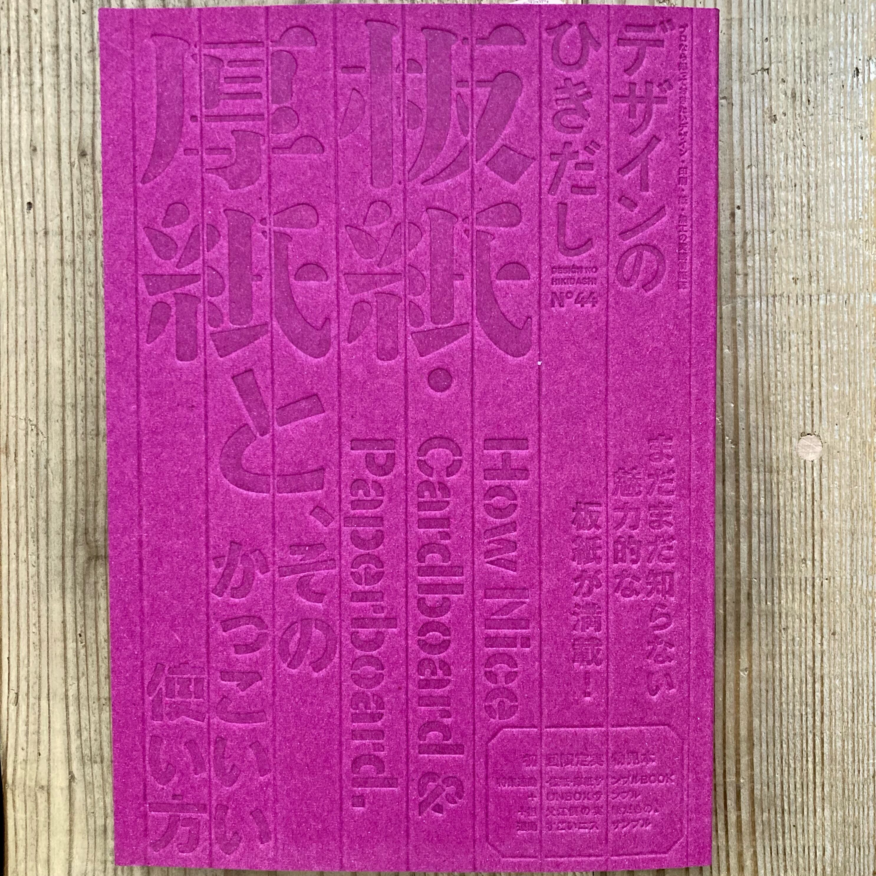 44号となる今号の特集は「まだまだ知らない魅力的な板紙が満載! 板紙・厚紙と、そのかっこいい使い方」として、知っているようで実はその豊富な種類があまり知られていない厚紙・板紙を徹底的に紹介。